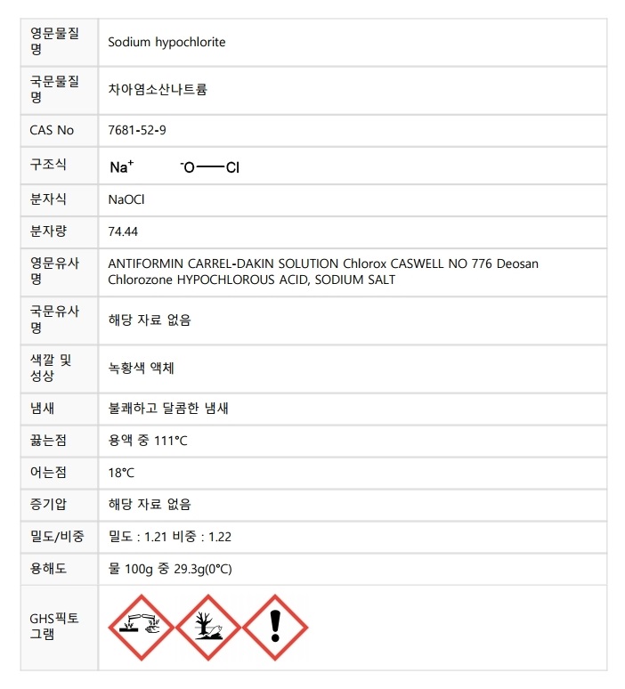 차아염소산나트륨(Sodium hypochlorite)