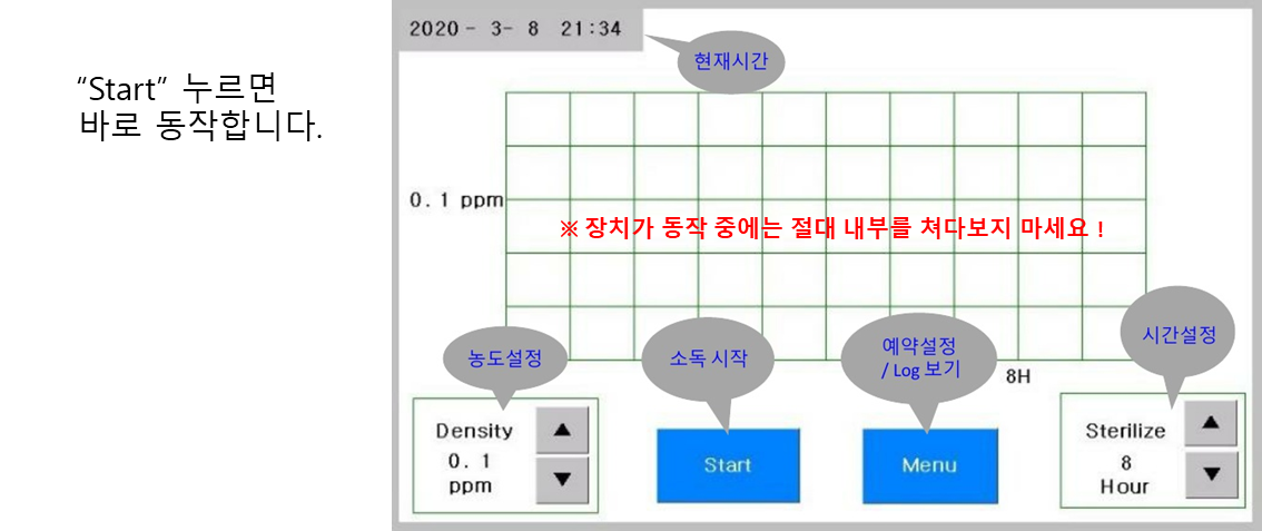 5. 소독 중에 출입이 가능하며 장시간 노출시 자극이 있을 수 있습니다.