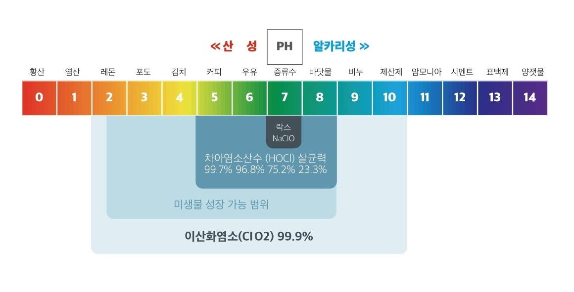 - 이산화염소 수를 장기간 보관할 때는 빛없이 냉장 보관하여야 함.