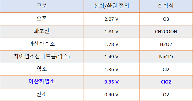 - 단점 : ㆍ보관 어려움ㆍ빛과 열에 빠르게 분해ㆍ농도 유지가 어려움ㆍ제조 공정이 위험ㆍ